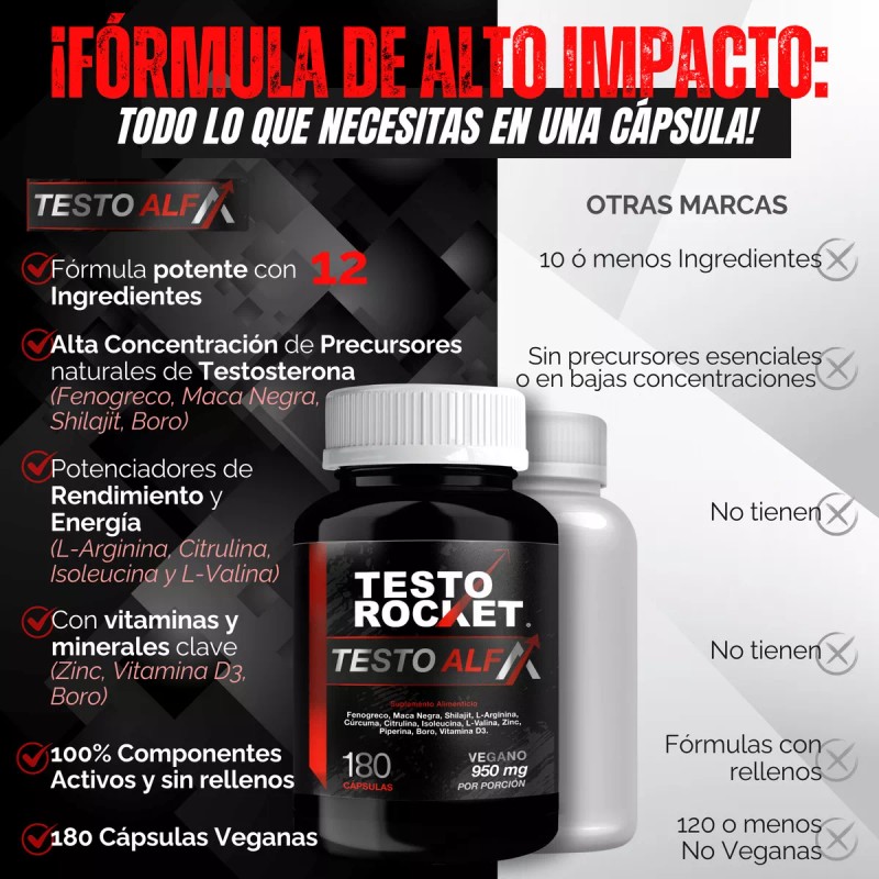 TESTO ROCKET - Testo Alfa | Vitaminas Para Hombres Precursor Testosterona | 12 Ingredientes Potenciados Fenogreco, Maca Negra, Shilajit, L Arginina, Boro, Curcuma, Citrulina | Testosterone Vital Vigor | 180 Cápsulas. ✅ Diseño innovador que supera las expectativas. Materiales de alta gama y acabados premium. 🎯 Producto más buscado del mes. Ideal para quienes buscan lo mejor en calidad y estilo. Producto auténtico con satisfacción total asegurada. ¡No te quedes sin el tuyo y aprovecha esta oportunidad única!