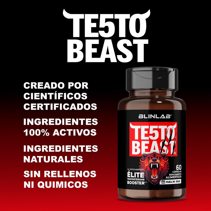 TESTO BEAST | Te verde, Granada, Citrulina, Arginina, Beta Alanina, Cacao y más | Suplemento formulado sin rellenos | Ingredientes Naturales | 180 cápsulas