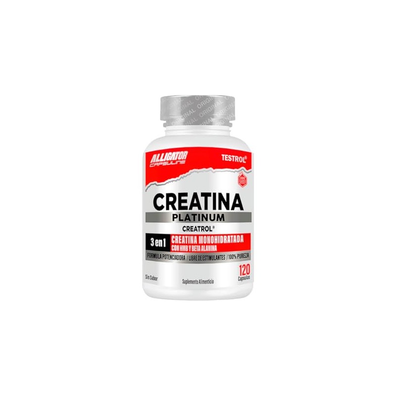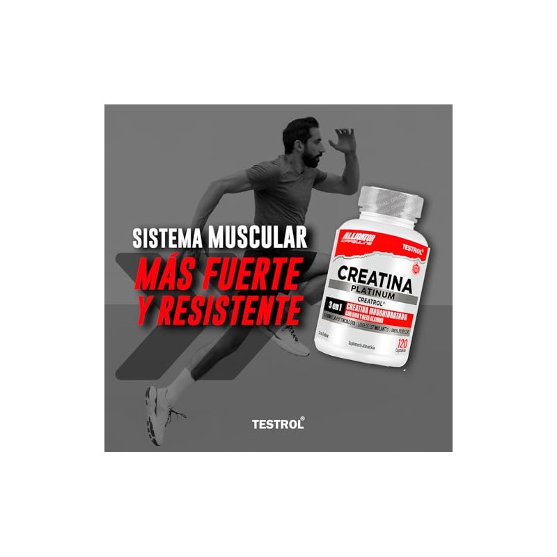 Testrol Creatina Platinum HMB y Beta Alanina Suplemento para Apoyo a Potencia, Resistencia y Rendimiento Fsico 120 Cpsulas