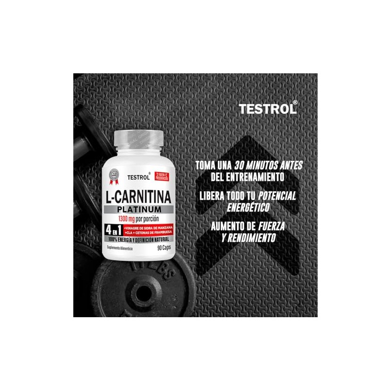 🌟 ⭐ Testrol | L-Carnitina Platinum 1300 mg | Con Vinagre de Manzana, CLA y Cetonas de Frambuesa | Apoyo Metabólico para Hombres y Mujeres | 90 Cápsulas ⭐ 🌟