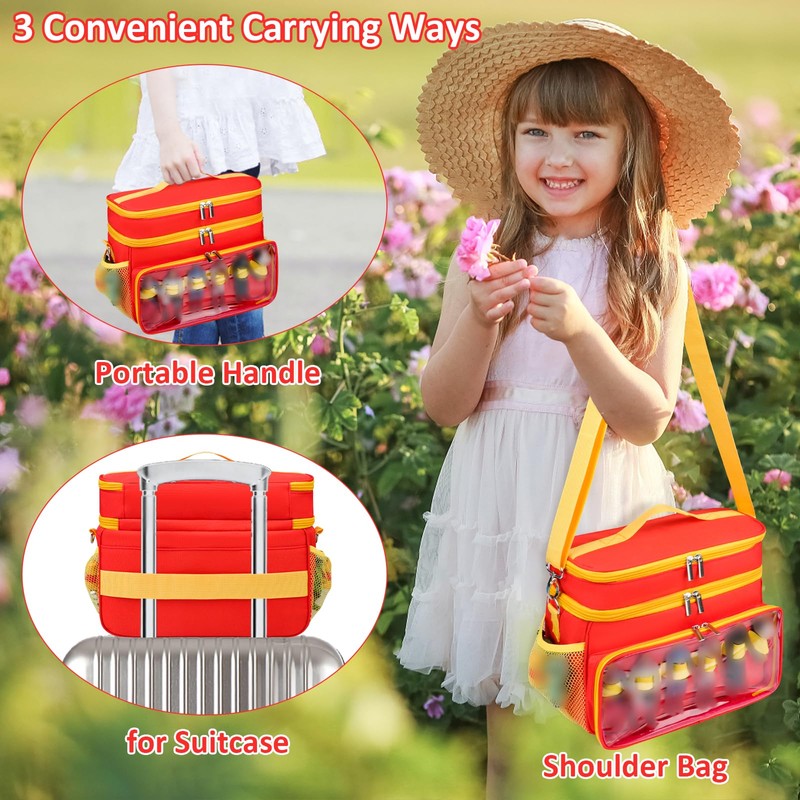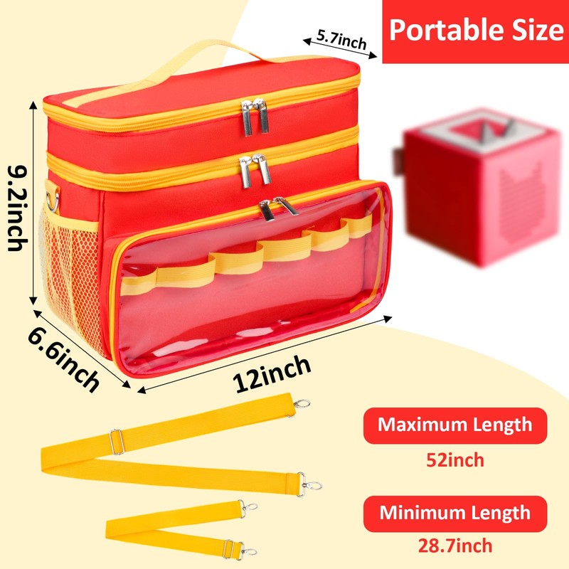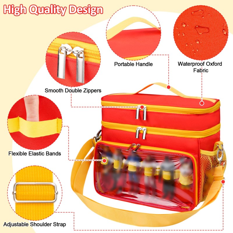 Tesuko Carrying Case Compatible with Toniebox Starter Set, Double Layer Storage Bag for Tonies Figures Characters, Portable Travel Organizer Case with Shoulder Strap for Tonies Box Headphones (Red)