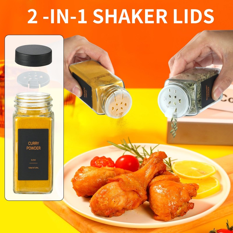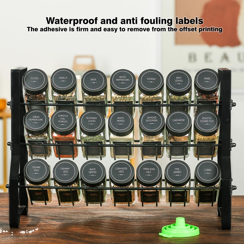 - Spice Bottles with Water Based Adhesive Label: The spice label is not easy to peel off, can be reused, waterproof, and stain resistant