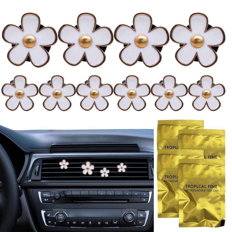 TETEWEVER 10 Stück Auto Lufterfrischer Clip Gänseblümchen Blume Auto Deko Innenraum Frauen Auto Zubehör Car Vent Clips für Auto Wohnzimmer Büro