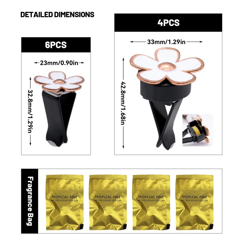 - ✅ Paket Enthalten: Sie erhalten 10 Stk Auto Lufterfrischer Clip und 4 Stk Dufttabletten. Die Gänseblümchen Deko für Auto haben 2 größen. Gänseblümchen Blume Design ist frisch und stilvoll, Ihr Auto damit zu dekorieren wird machen ihr leben exquisiter, romantische und farbenfroher.