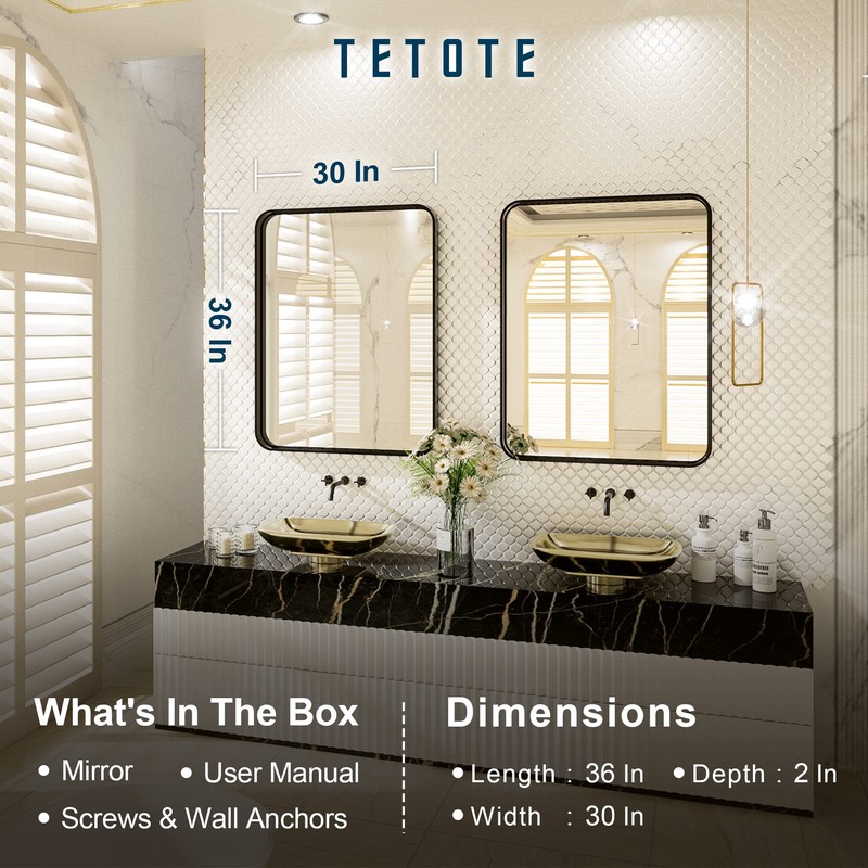- 【Elegant and Versatile Framed Mirror】Enhance your space with TETOTE's exquisite framed bathroom wall mirror. Crafted with precision, it boasts a premium black metal frame that exudes sophistication. The sleek rectangular shape with rounded corners adds a touch of modernity to any bathroom, bedroom vanity, entryway, farmhouse, hotel, or salon.