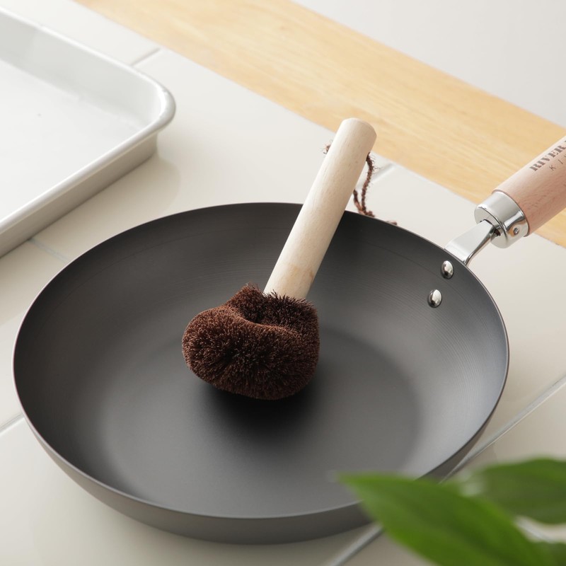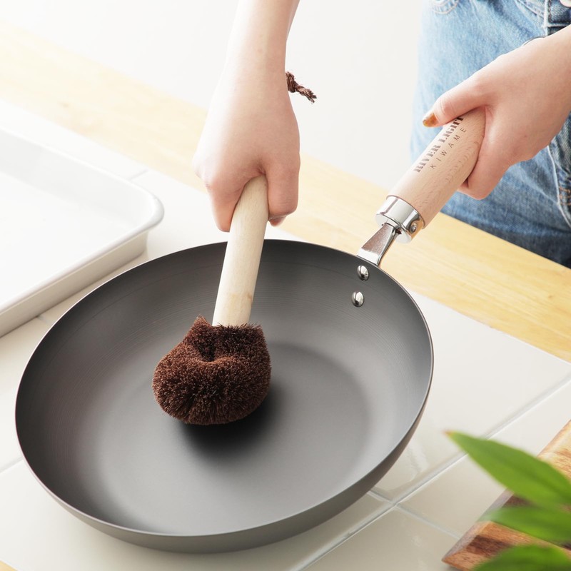Tetsudo-do x Tomiichi Nakanishi Koubou Scourer with Handle for Frying Pans, Natural Wood Handle, For Frying Pans, Easy to Use, For Everyday Use, Tawashi with Handle, No Burns