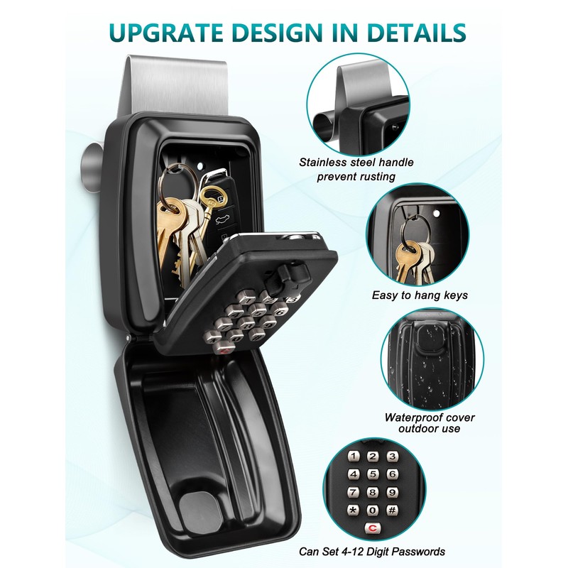 - PREMIUM QUALITY MATERIALS: Our car key lock box is made of high strength solid aluminum alloy body and tough ABS plastic coating, strong, secure, corrosion-resistant and durable; waterproof protective cover design protects the keypad from any weather conditions