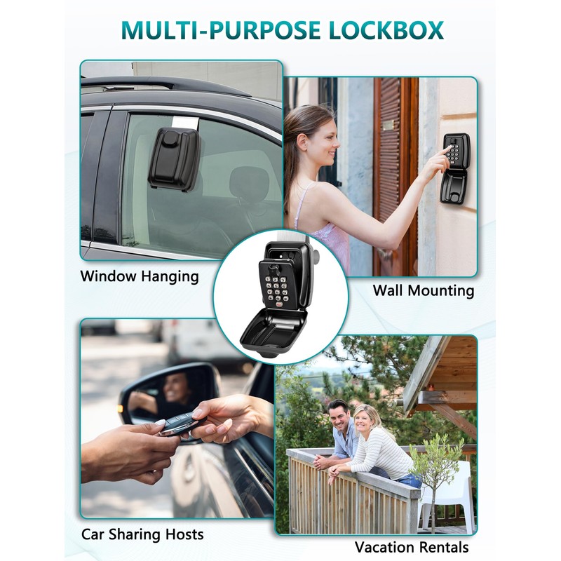 1, Our car key lock box is designed for car sharing. Perfect for Turo, Getaround and other car sharing services. Provides contactless rental for car owners or landlords. Guests can receive the code and use it anytime. Install and use in multiple scenarios with secure and convenient storage. Perfect solution for homeowners, realtors, property management, vacation homes, caregivers or anyone else storing keys or other items.
