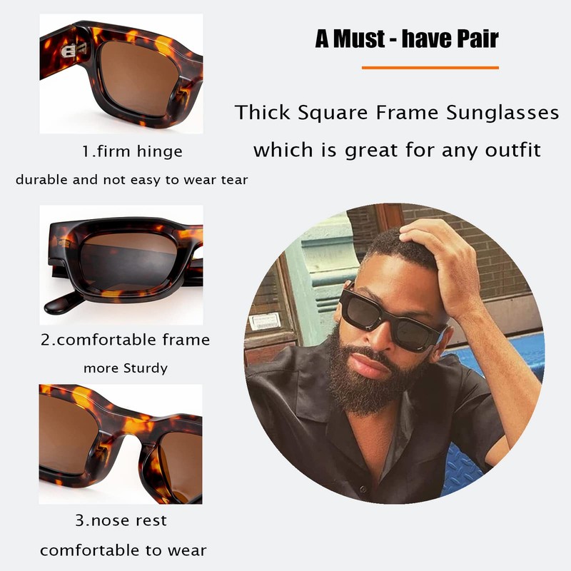 - PREMIUM MATERIAL - Chunky rectangle polarized sunglasses are made of premium polycarbonate lens PC temples. A reinforced metal hinge is designed to prevent the loosening of screws and makes the small sunglasses for men women smooth for opening and closing and look more delicate. Ergonomically designed, make wearing more comfortable.