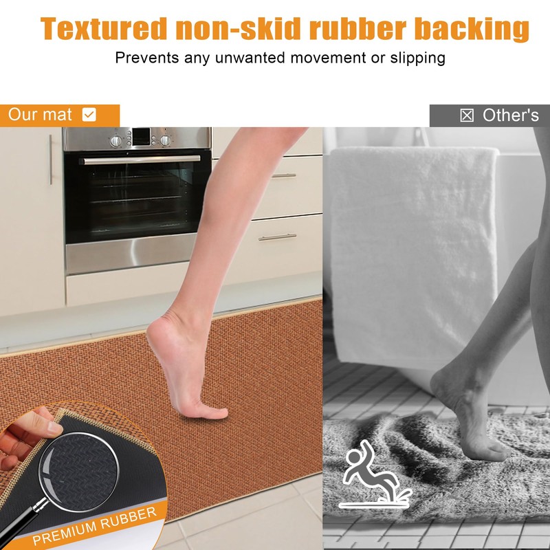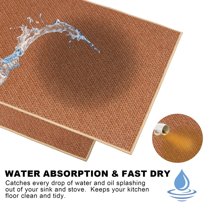 - Water Absorption & Fast Dry: Teutorigos kitchen rug catches every drop of water splashing out of your sink, allows you being much safer than standing on a wet, slippery floor full of water and oil spills in front of sinks and stoves. Keep your floor nice and clean.