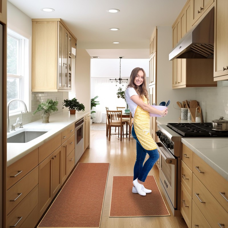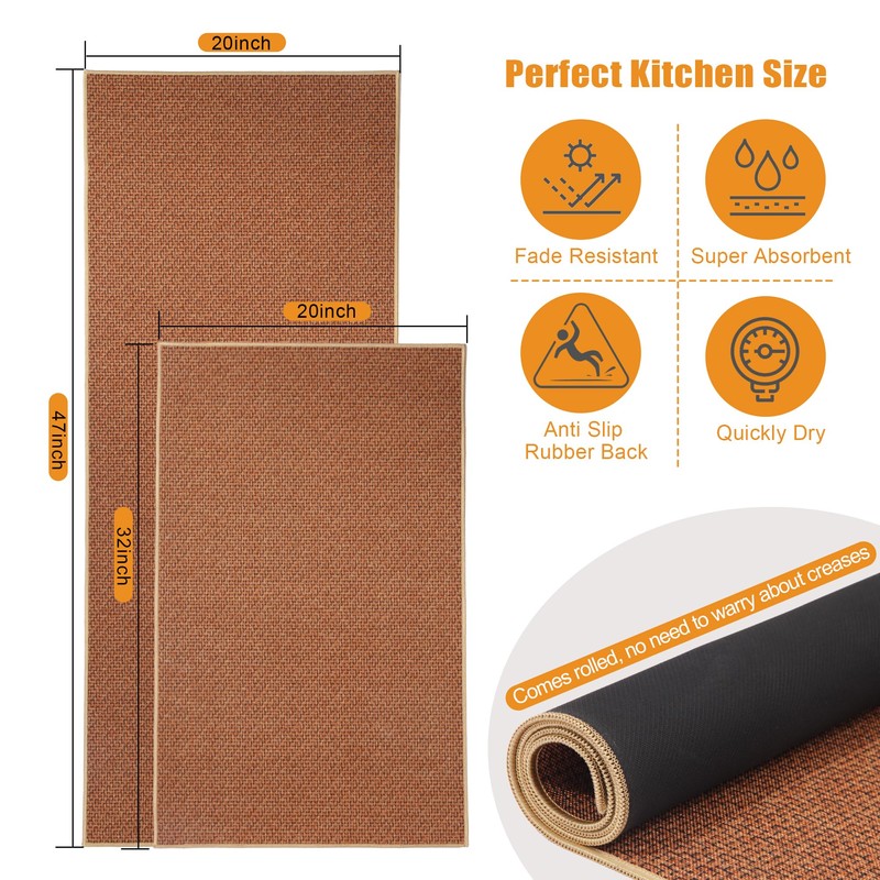 Teutorigos Kitchen Mats for Floor 2 Piece Ultra Thin, Non-Skid Kitchen Floor Mats - Kitchen Rugs Set of 2 for Oil & Water Absorption Fast Dry Machine-Washable Multi-Purpose (Brown, 20"×32" + 20"×47")