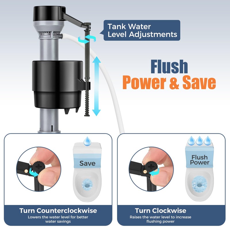 - 【Water-Saving Toilet Tank Parts】 Customize your flush with adjustable tank and bowl water level controls. The fill valve ensures precise water delivery, optimizing performance while conserving water and lowering your water bill