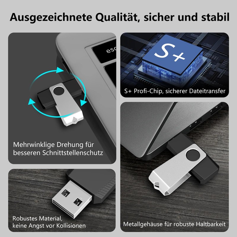 - Excellent quality: the metal clip of the USB stick has good wear resistance and scratch resistance, which can reduce damage caused by daily drops and use. Professional grade S+ chip with strong read and write performance; the metal interface can withstand 200,000 mating cycles and can still be used normally.