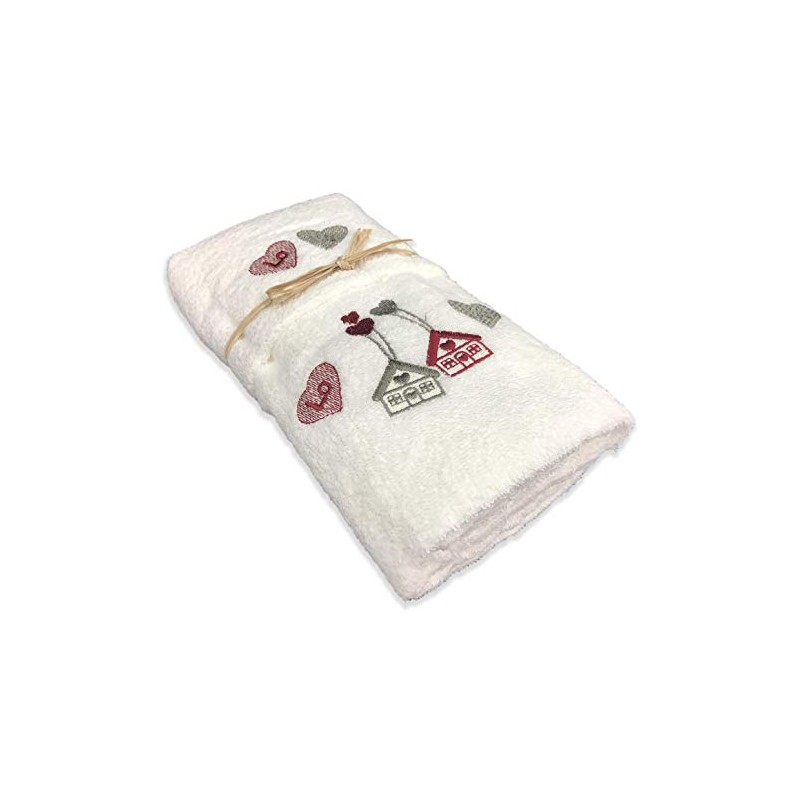 The towel measures 60 x 110 cm, guest towel measures 40 x 60 cm and both are embroidered.