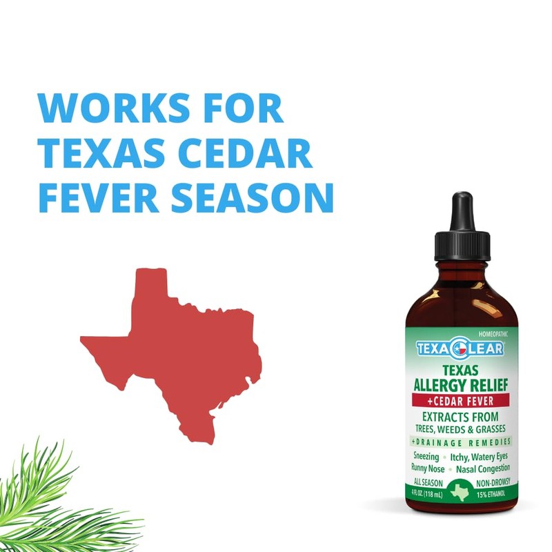- TEXAS ALLERGIES + TEXAS CEDAR FEVER: Custom formulation for Texas allergies and Texas cedar fever relief all season long.