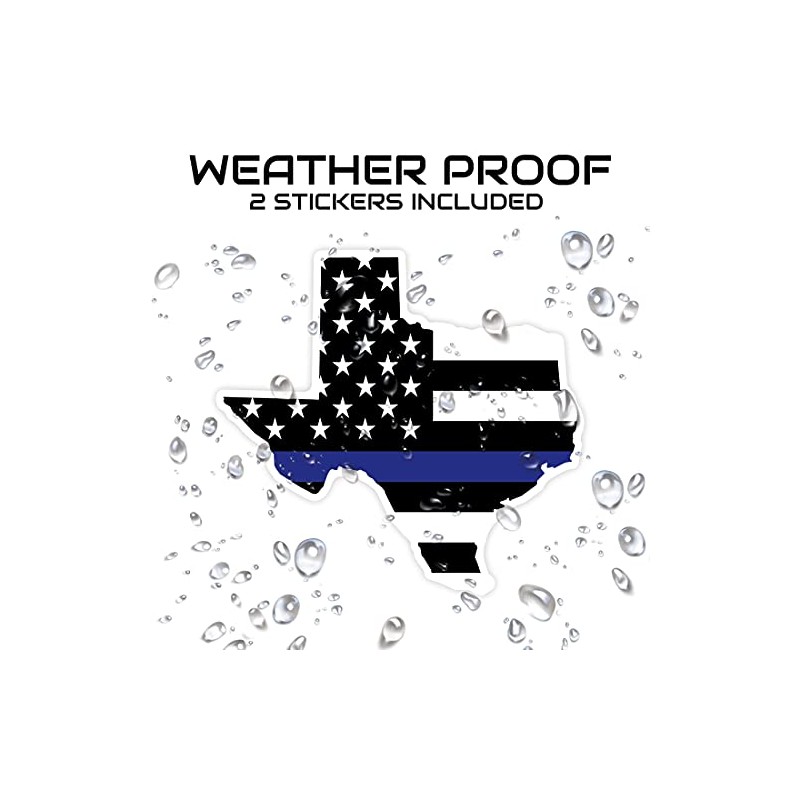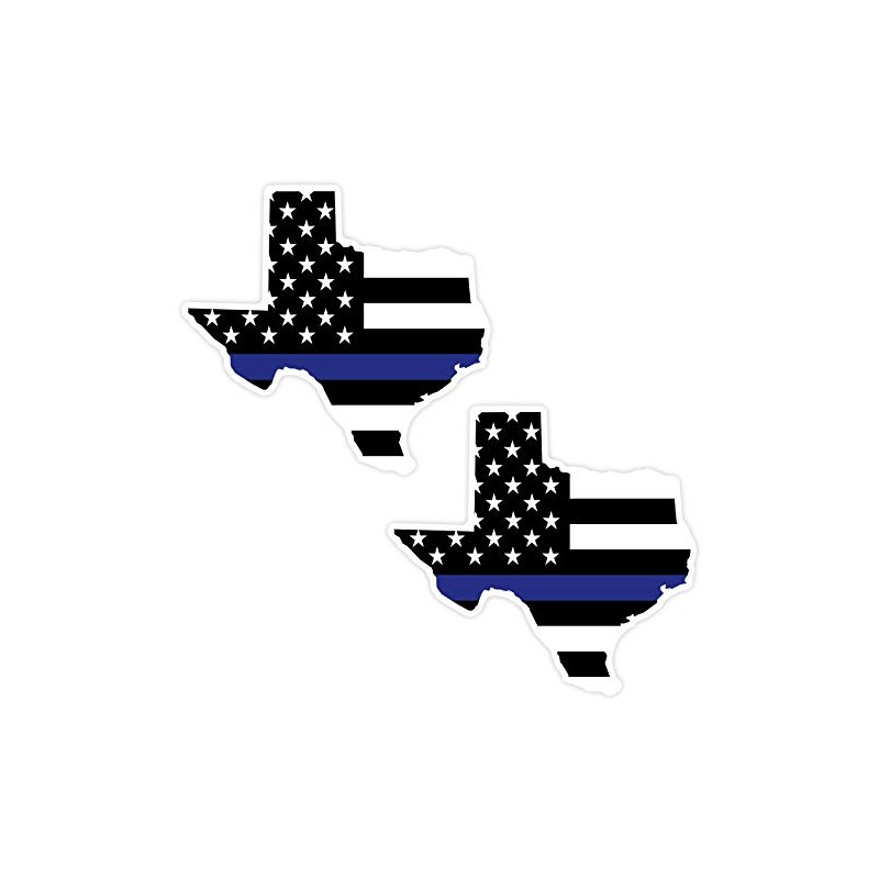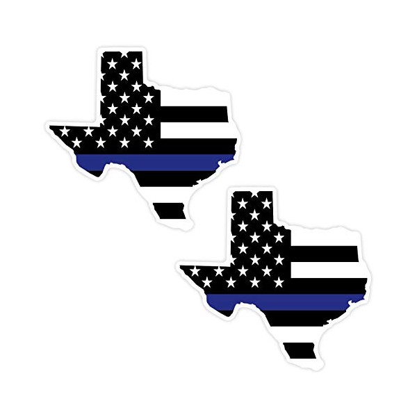 Texas Blue Line Vinyl Sticker Decal - Texas State Shaped Blue Line Flag - 2 Pack