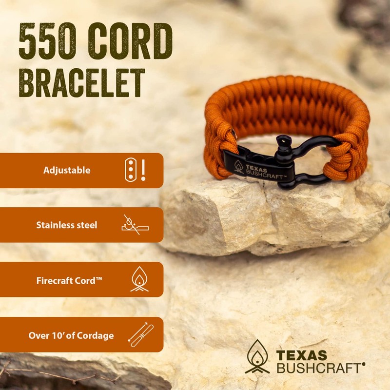 - OVERCOME ADVERSITY in the great outdoors with the Firecraft Survival Bracelet by Texas Bushcraft. This patent-pending twist on the military paracord bracelet has 3 extra strands for greater functionality and resilience.