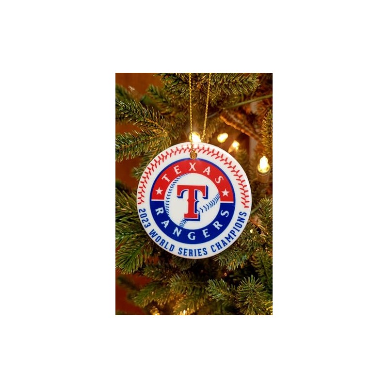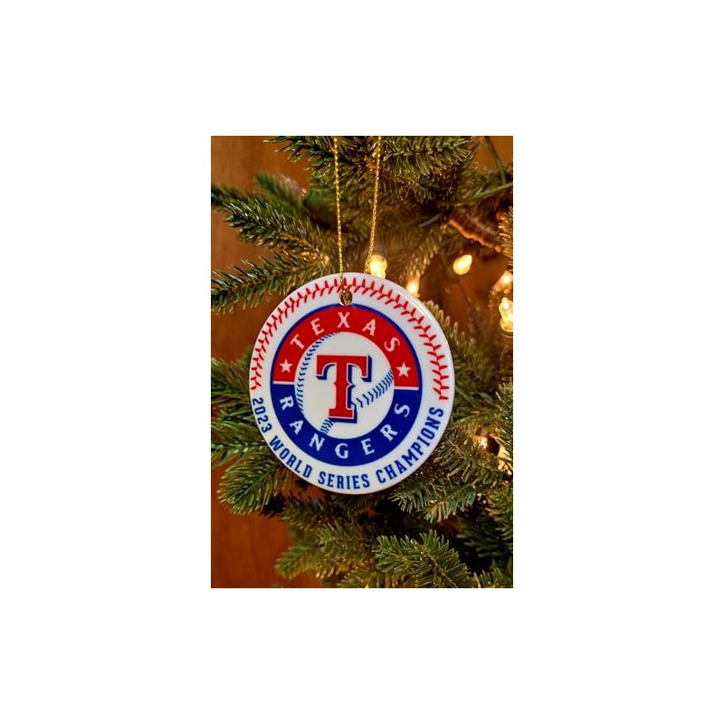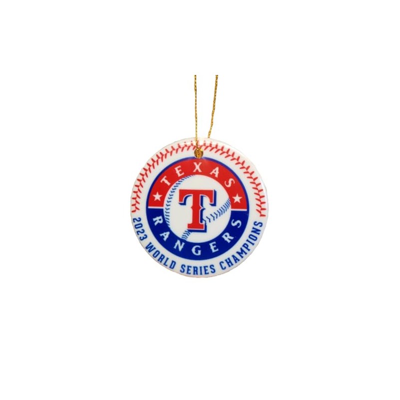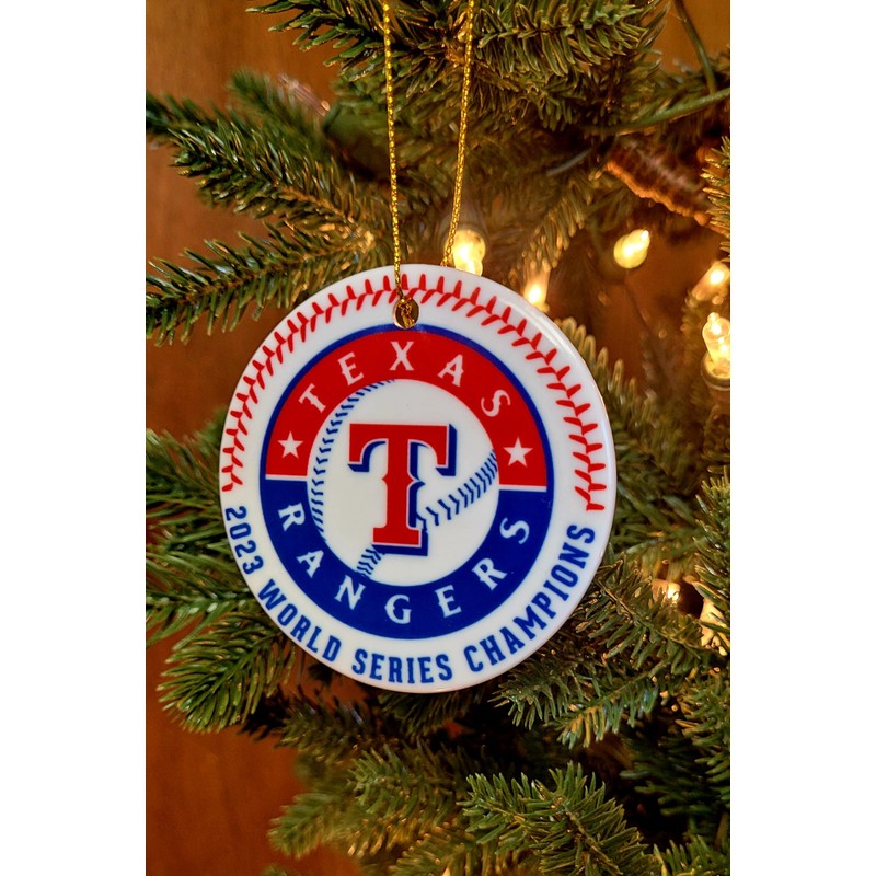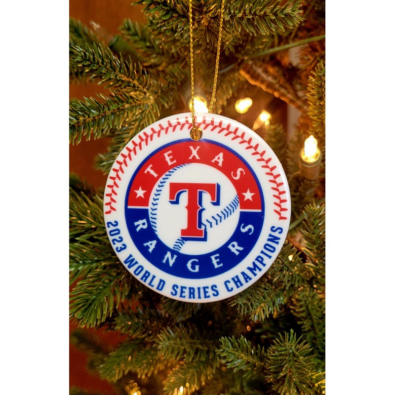 Ranger 2023 World Series Champs ceramic Christmas Ornament will make the perfect addition to your tree this year. Includes a gold string to hang it with. Gift box at no additional charge.