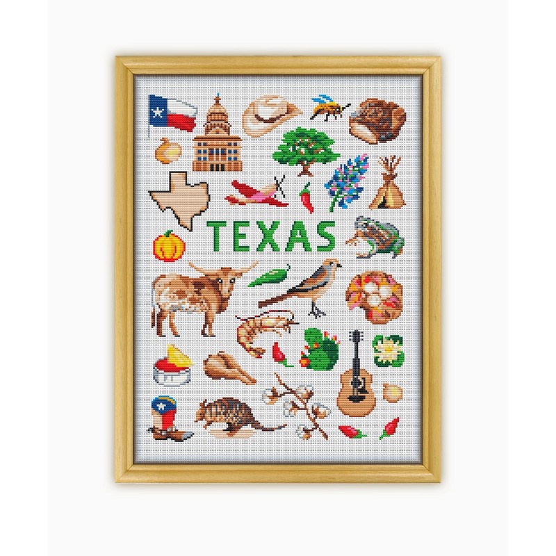 Texas Collection CS1857 - Counted Cross Stitch KIT#2 Prime. Set of Threads, Needles, AIDA Fabric, Needle Threader, Embroidery Clippers and Printed Color Pattern Inside.