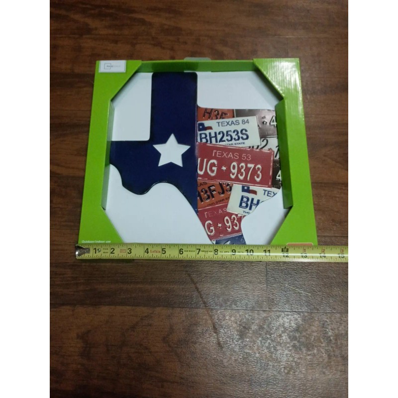 Texas Metal Decorative Sign With License Plate In The Shape Of Texas Wall Art