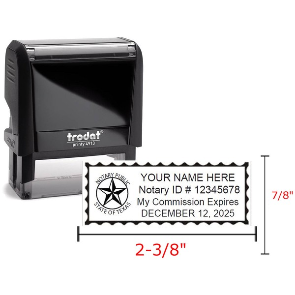 Texas Notary 4913 Black Stamp | Printy Model | 2.3X.81 inch Rectangular | Texas (Stamp)