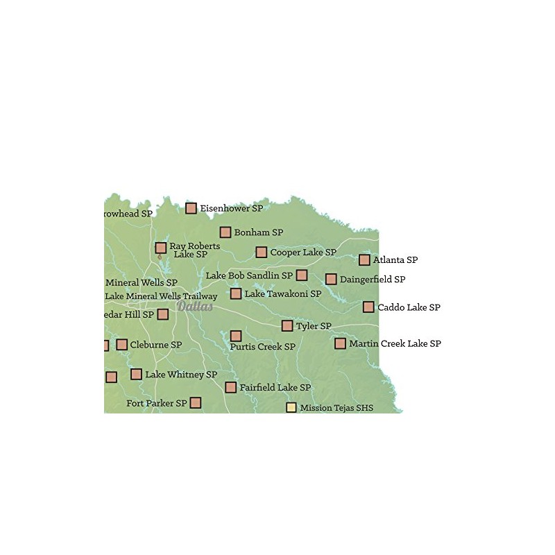 Texas State Parks Checklist Map 11x14 Print (Green & White)