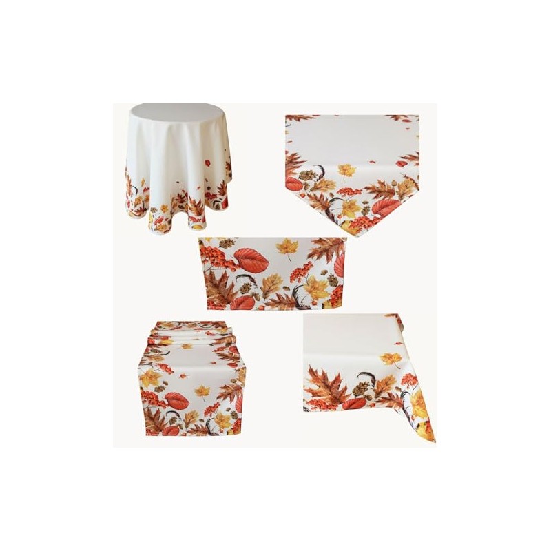 - Easy-care, with autumn motifs in a subtly textured matte look and fine quality. The tablecloth is printed with leaves and is a real eye-catcher.