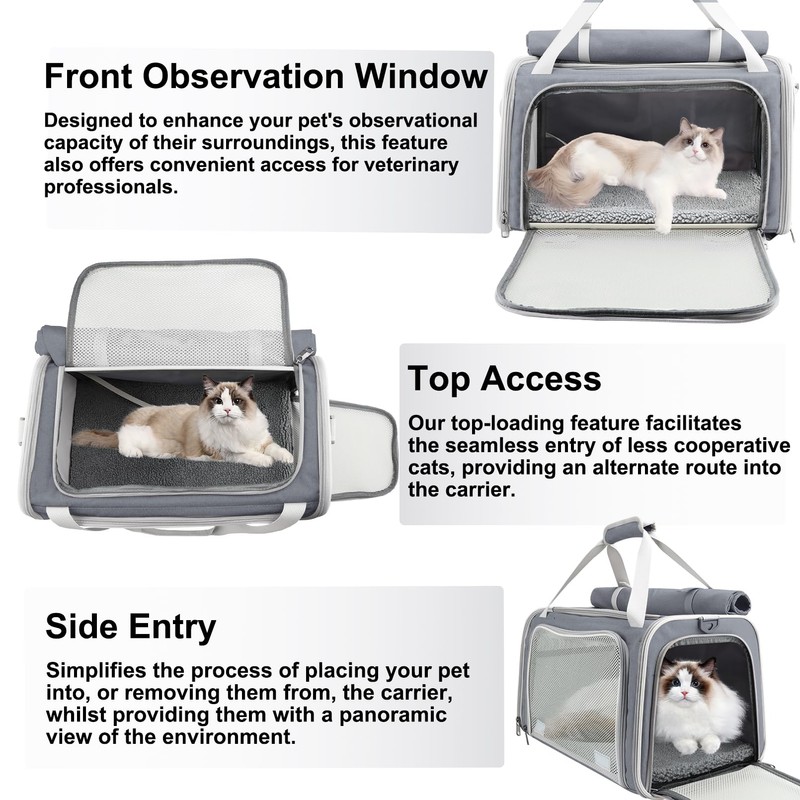 - đ±ăMultiple-Ways of UseăOur airline-approved pet carrier can be worn over the shoulder, secured in the car with a seatbelt, placed atop your luggage, or carried using the top handle. The padded shoulder strap ensures comfort and aids in load distribution and fatigue relief during travel. The cat carrier bag is collapsible for easy storage. Warranty: We offer a lifetime warranty on our products. Please feel free to contact us if you have any questions.
