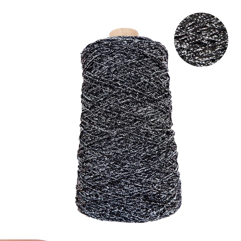 TEXTEX = Lamé Cuquillo Cone with Lurex. Yarn for Knitting, Crochet, and Crocheting. Composition 95% Rayon and 5% Lurex. 1 Cone of 200g and 400mts - (Black and Silver)