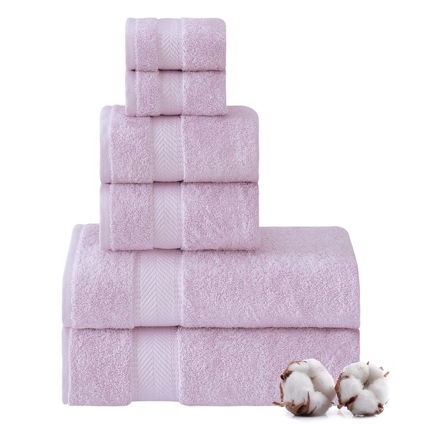 TEXTILOM 100% Turkish Cotton 6 Pcs Bath Towel Set, Luxury Bath Towels for Bathroom, Soft & Absorbent Bathroom Towels Set (2 Bath Towels, 2 Hand Towels, 2 Washcloths)- Lilac