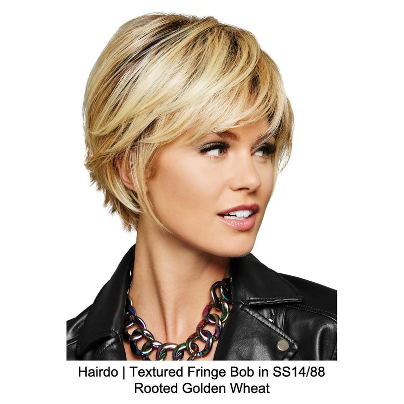 - Textured Fringe Bob by Hairdo has a beautiful face-framing front, sweeping fringe, layered volume in the back, and playful texture at the nape. Though it’s short, you can still have fun with all the styling options. The basic cap has spaces between the open wefts that allow ventilation to cool your scalp making it lightweight and comfortable. This ready-to-wear Tru2Life heat-friendly synthetic fiber allows you to style with heat tools and looks and feels like natural hair.