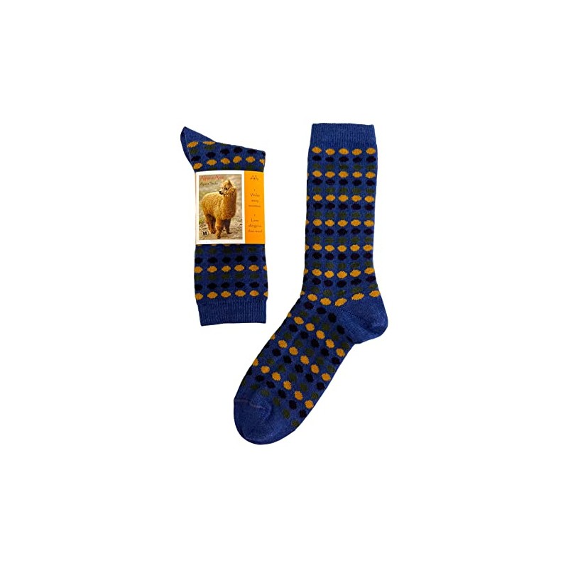 Tey-Art Alpaca Wool Designer Socks are Cozy, Warm & Colorful - Polka Dot Blue Large