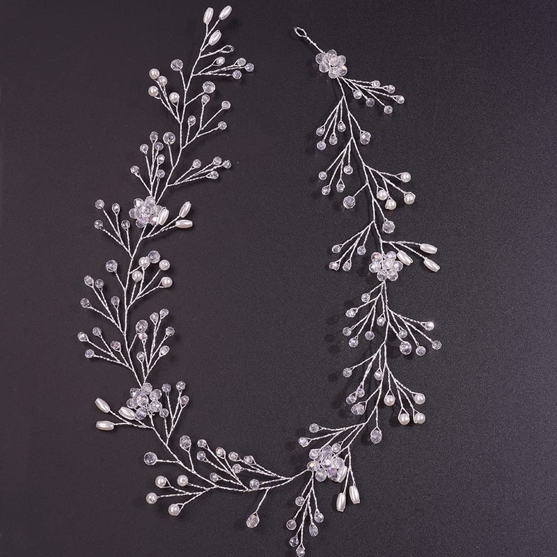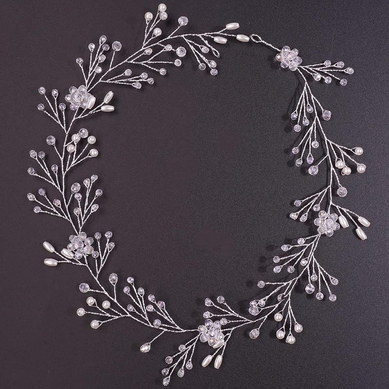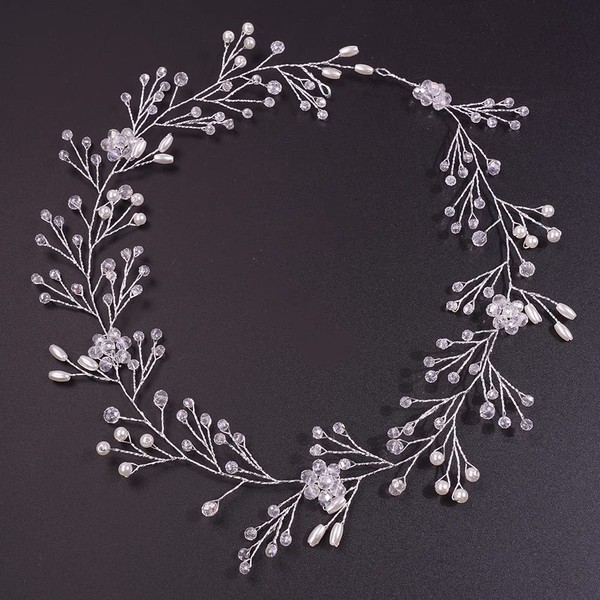 Teyglen Flower Crystal Wedding Hair Vine Bridal Rhinestone Beads Headband Hair Vine Silver Pearls Rhinestone Beads Hair Pieces for Bride Handmade Headpieces Hair Accessories for Women Flower Girls