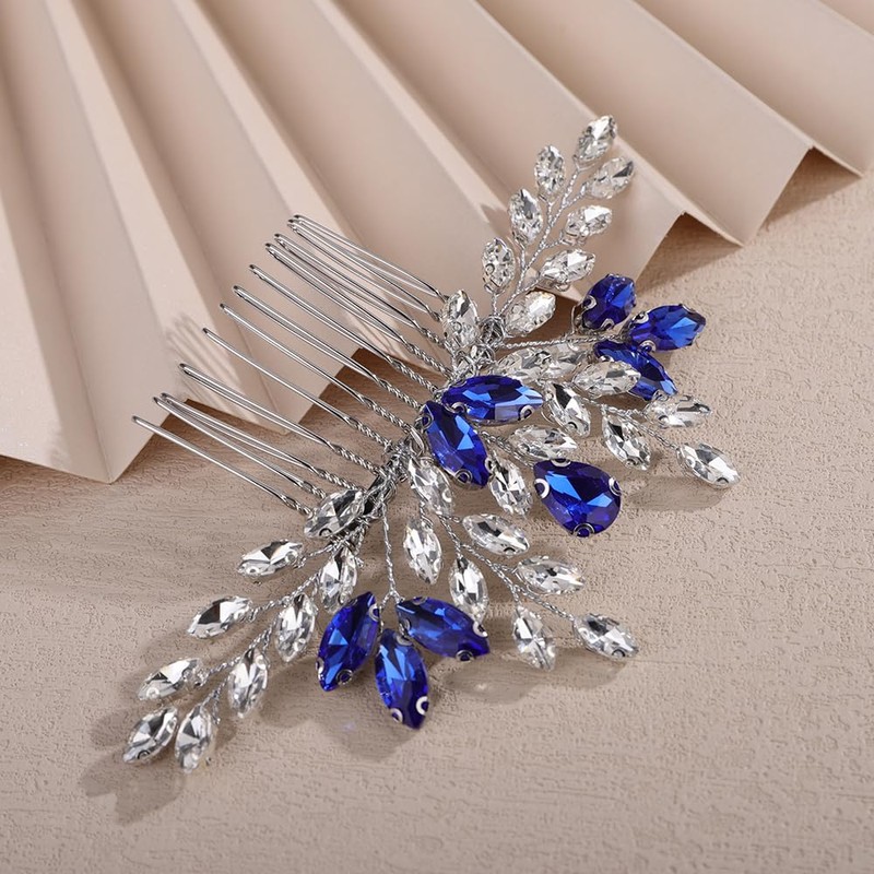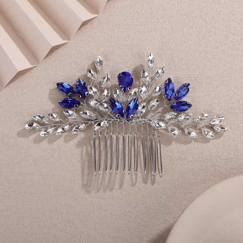 - Sparkly silver and blue crystal rhinestone hair comb for women party prom wedding and evening,exquisite and unique design,will add more charm for your outfit.