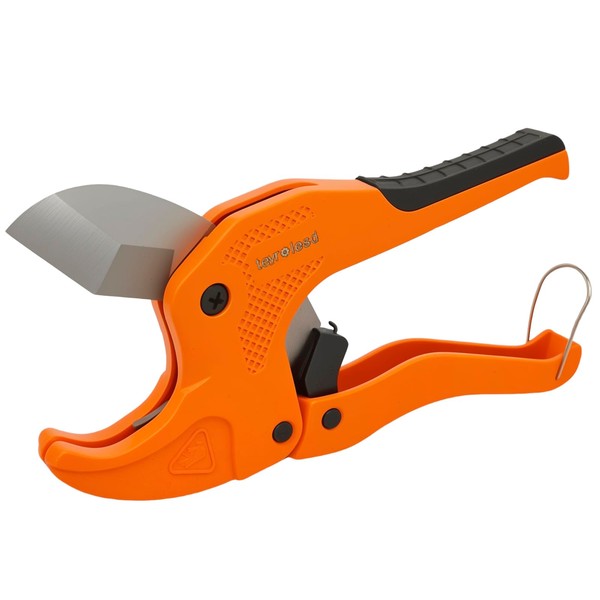 TEYROLESD 1-5/8" Ratchet PVC Pipe Cutter - Heavy-Duty Orange PEX/PVC Pipe Cutter with Stainless Steel Blade & V-Shaped Edge | Extended Handle & Adjustable Jaw,Plastic Pipe Cutter