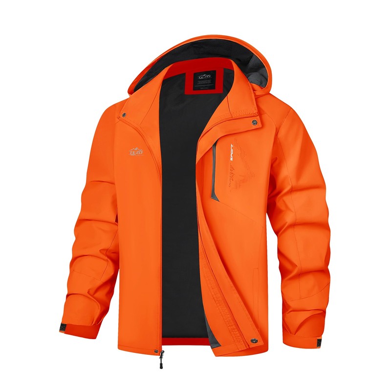 TEZO Mens Rain Jacket Waterproof with Hooded Hiking Coat Lightweight Windbreaker(SOOG L)