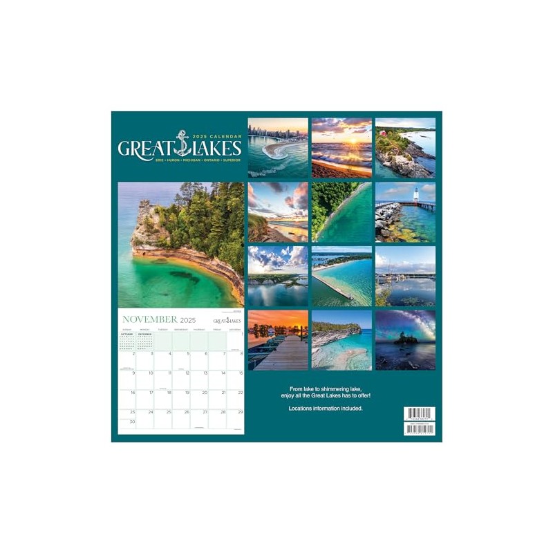 • EXPLORE THE SHORES: Bring the beauty of the largest body of freshwater in the world into your home with this calendar! Each month features breathtaking full-color photos of the Great Lakes that make you feel like you’re there with your toes in the sand.