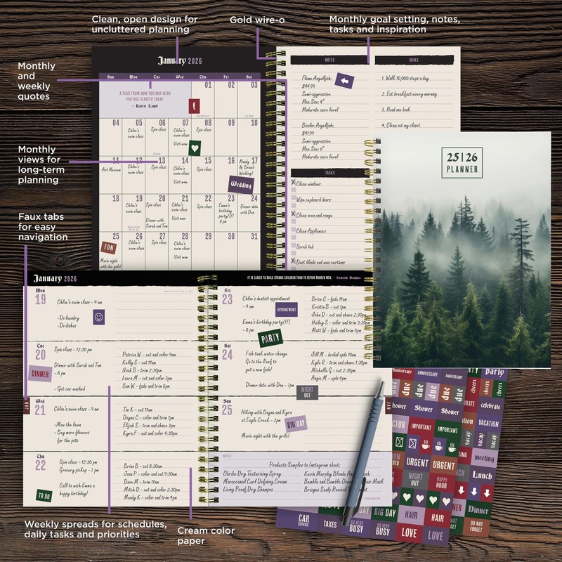 TF Publishing July 2025 - June 2026 Mystic Forest Medium Weekly Monthly Planner - 12 Month Academic Planner 2025-2026 with Durable Cover, Thick Cream Colored Paper, and Planning Stickers - 6.5in x 8in
