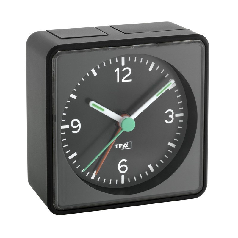 TFA 60.1013 Push Analogue Silent Alarm Clock - Sweep Movement No Ticking