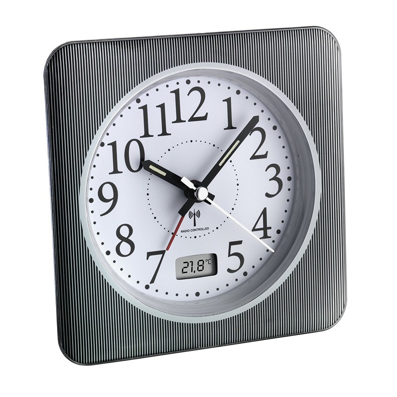 TFA Dostmann 60.1502.10 Analoger Funkwecker mit Temperaturanzeige (schwarz-weiß mit Batterien)