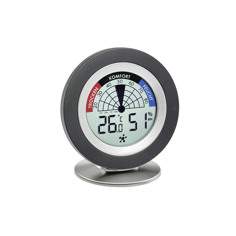 TFA Dostmann Cosy Radar Digital Thermo-Hygrometer, 30.5043.01, Ideal for Mould Prevention, L 104 x W 20 (77) x H 104 (114) mm