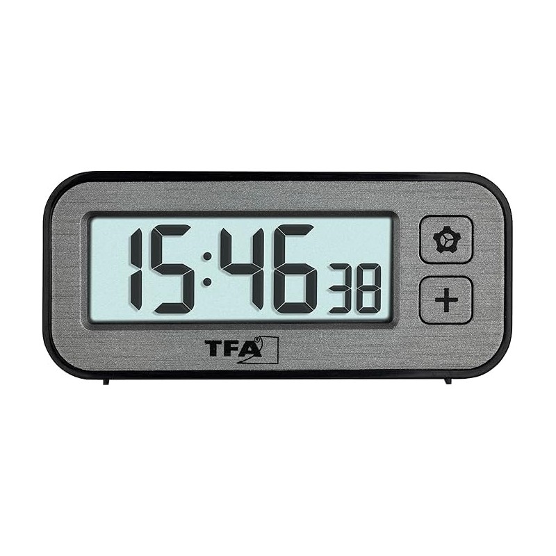 The time is received via the DCF 77 signal by radio and displayed exactly to the second. The switch from summer to winter time is automatic.