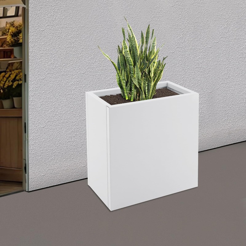 TFCFL Metal Rectangular Planter Box,Galvanized Steel Long Box Planter Outdoor Planters,Tall Planters for Porch Patio Garden 20.5x10x22in (White)
