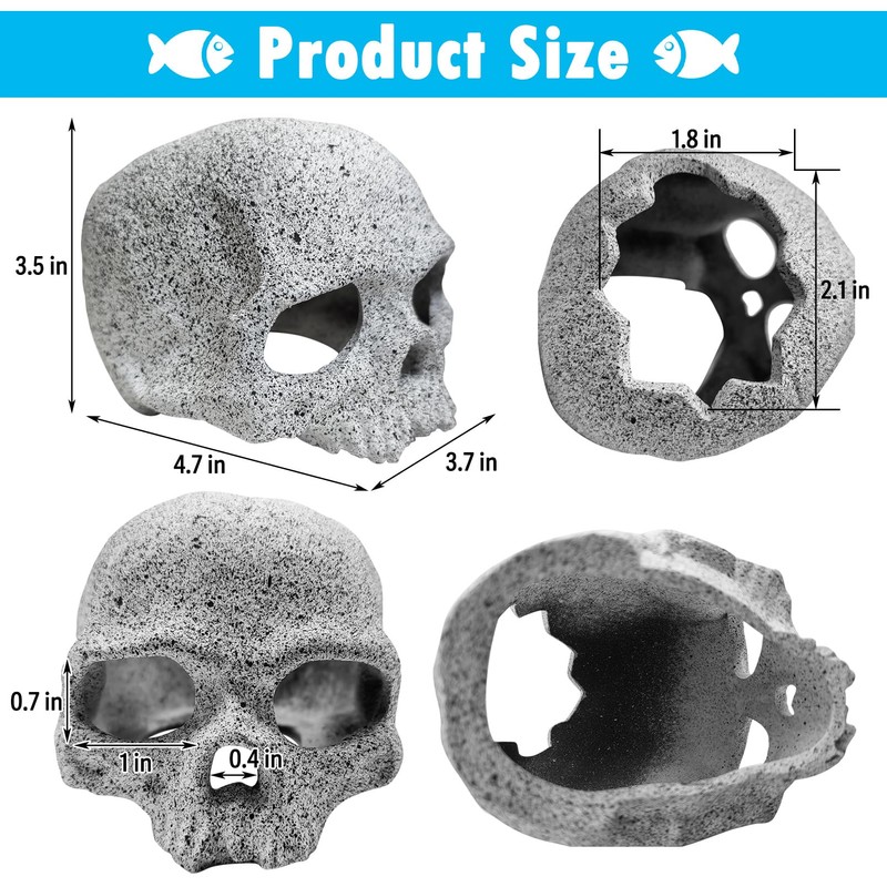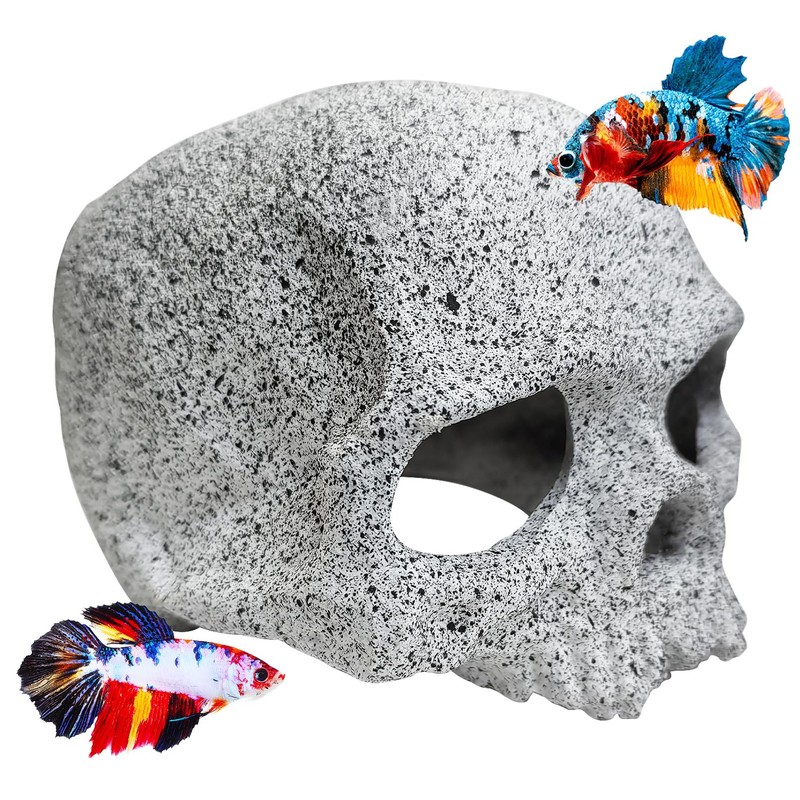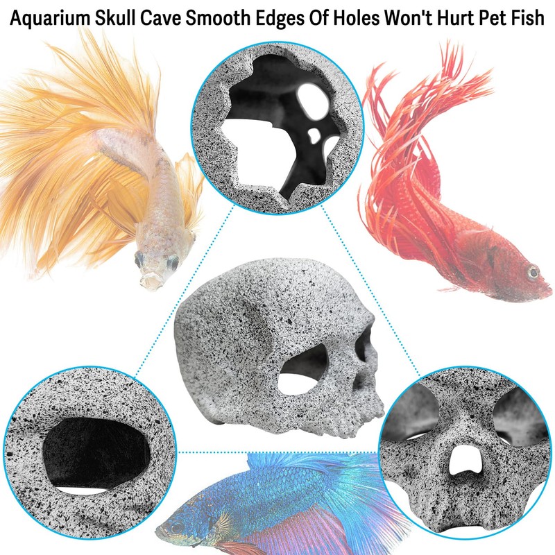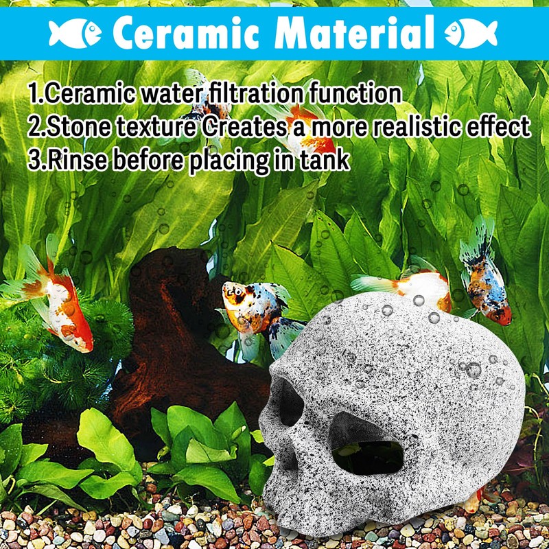 - CERAMIC MATERIAL: The aquarium skull cave is made of ceramic with the function of filtering water. Mimics natural stone texture to create a more natural visual effect, it is friendly for fish. Before putting the product into the aquarium, please rinse with water first