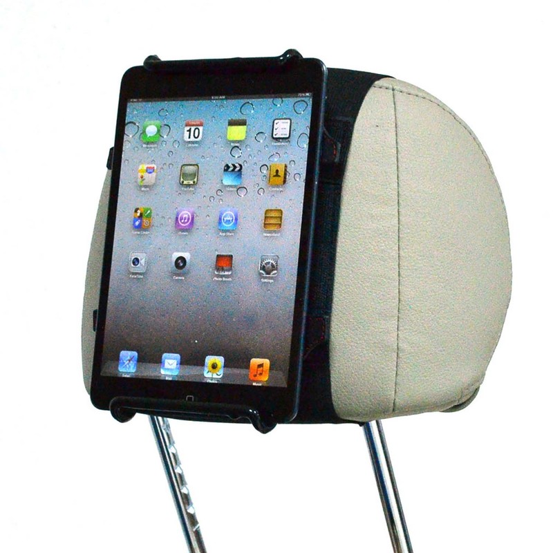 - Simple, Fácil y Universal - Monte su Tablet PC al reposacabezas de su coche - Funciona bien con todos los iPads y Tablets Samsung además de con otras PC Tablets de 7 a 11 pulgadas - La correa ajustable permite un montaje seguro y rápido a casi cualquier reposacabezas de coche