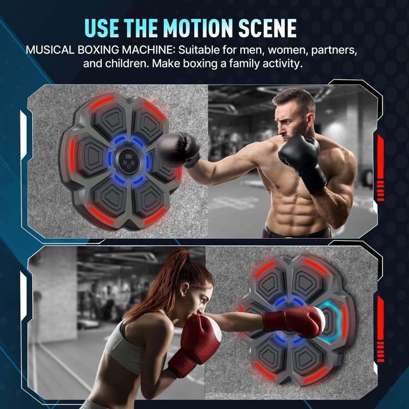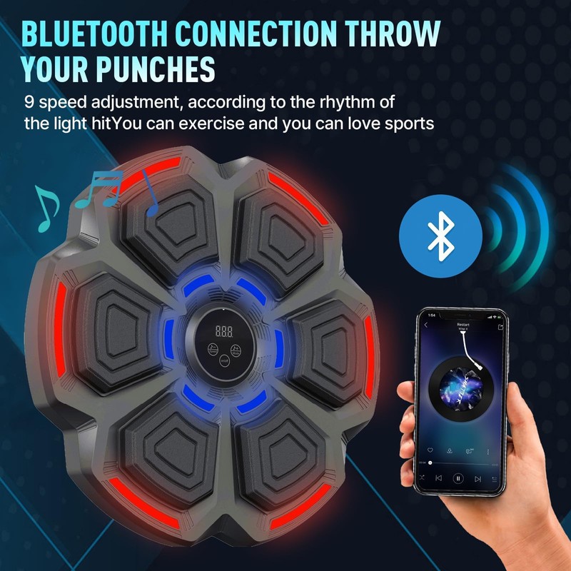 - 【Upgraded Music Boxing Machine】Elevate your boxing with our Music Boxing Machine that dazzles with dynamic LED lights. Connect via Bluetooth to play your favorite tracks during training, and immerse yourself in the rhythm and melody with surround sound that's both fun and motivational.