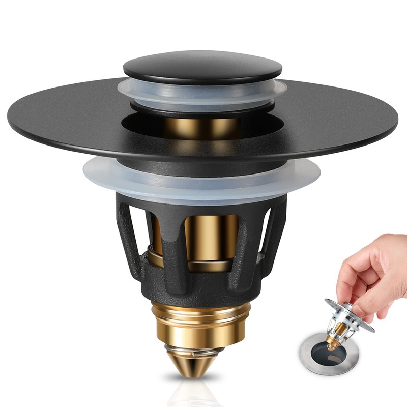 - Premium Quality: Our pop up sink stopper is made of integral molding brass with matte black finish for lasting rust-proof, and It features three silicon seals in three different positions, making it highly reliable