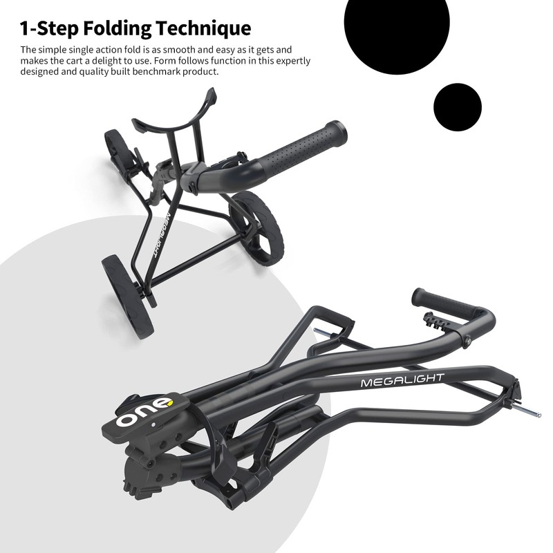 - 1-Step Folding Technique - The simple single action fold is as smooth and easy as it gets and makes this golf push cart a delight to use. Form follows function in this expertly designed and quality built benchmark product.