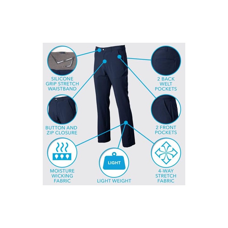 TGW Men's Flat Front Stretch Waist Performance Golf Pants Charcoal 34 35