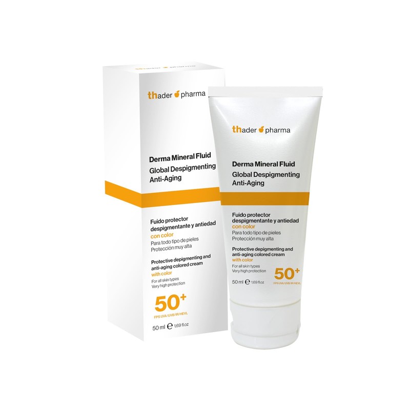 Thader Pharma Getönter mineralischer Sonnenschutz fürs Gesicht SPF 50+ – Derma Mineral Fluid, Pigmentflecken vorbeugen – Anti-Aging – Für empfindliche Haut, 50 ml